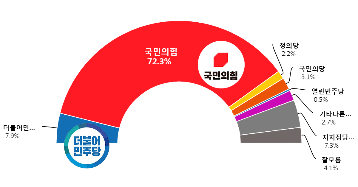 ±ºÀ§±º Á¤´çÁöÁöµµ¡¥±¹¹ÎÀÇÈû 72.3%, ´õºÒ¾î¹ÎÁÖ´ç 7.9%