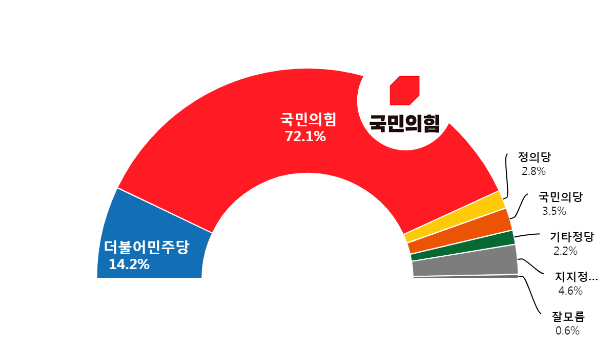 ±èõ½Ã Á¤´çÁöÁöµµ¡¥±¹¹ÎÀÇÈû 72.1%, ´õºÒ¾î¹ÎÁÖ´ç 14.2%, ±¹¹ÎÀÇ´ç 3.5%