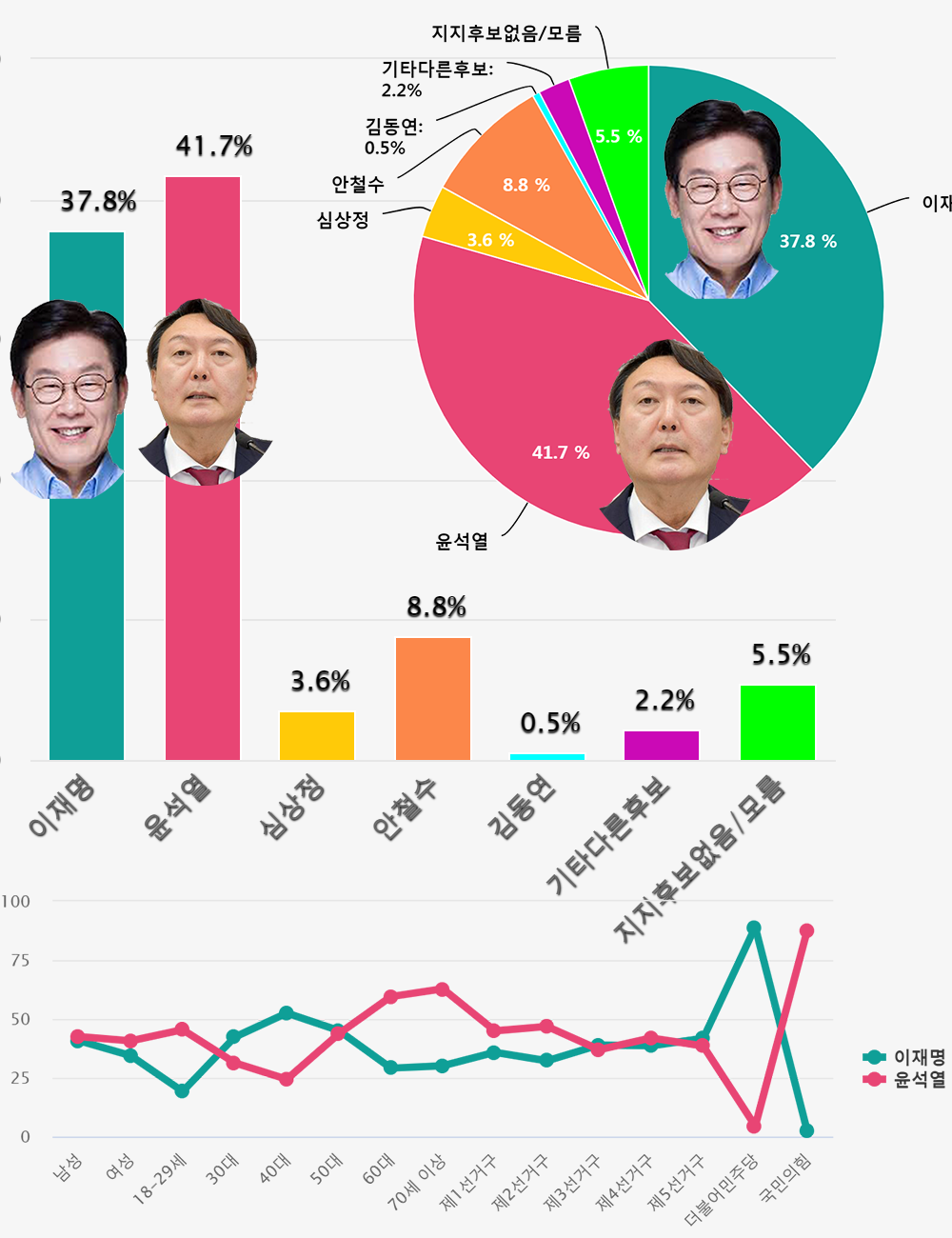 [ƯÁýÆòÅÿ©·Ð]À±¼®¿ vs ÀÌÀç¸í 3.9%pÂ÷ ÃÊÁ¢Àü, Á¤´çÁöÁöµµ ±¹¹ÎÀÇÈû 5%p ´õ ³ô¾Æ¡¦Â÷±âÆòÅýÃÀåÀº °øÀ籤 Á¤Àå¼± ²Å¾Æ
