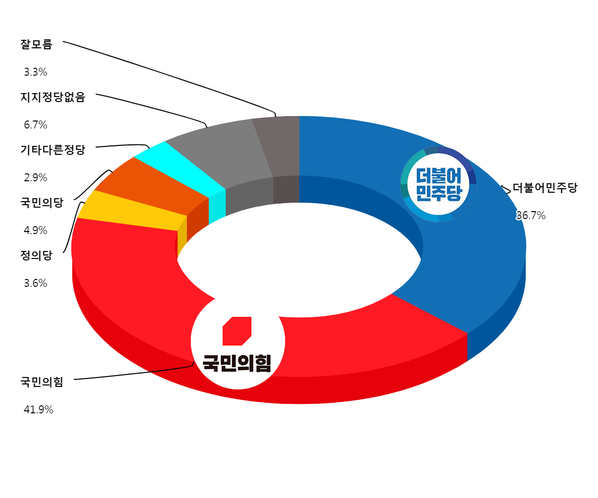 ¡ã ÆòÅýà Á¤´çÁöÁöµµ¡¥±¹¹ÎÀÇÈû 41.9%, ´õºÒ¾î¹ÎÁÖ´ç 36.7%, ±¹¹ÎÀÇ´ç 4.9%, Á¤ÀÇ´ç 3.6% ¼øÀ¸·Î ³ªÅ¸³ª