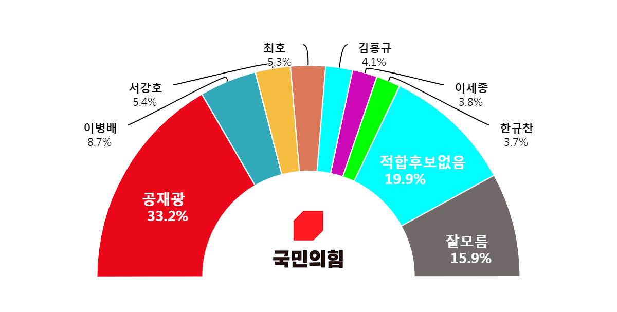¡ã ±¹¹ÎÀÇÈû ÆòÅýÃÀå Èĺ¸ ÀûÇÕµµ¡¥°øÀ籤 33.2%, À̺´¹è 8.7%, ¼°È£ 5.4%, ÃÖÈ£ 5.3%, ±èÈ«±Ô 4.1%, À̼¼Á¾ 3.8%, ÇѱÔÂù 3.7%