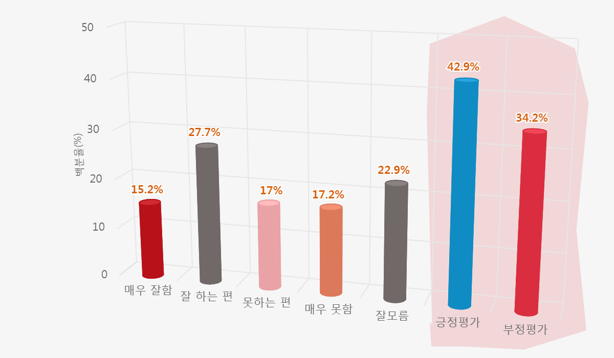 ¡ã Á¤Àå¼± ÆòÅýÃÀå ½ÃÁ¤¿î¿µÆò°¡¡¥Àß ÇÏ´Â Æí 27.7%, ¸Å¿ì ¸øÇÔ 17.2%, ¸øÇÏ´Â Æí 17%, ¸Å¿ì ÀßÇÔ 15.2%