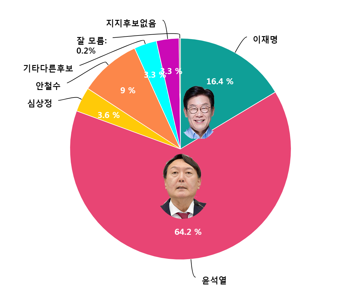 ¡Þ À±¼®¿ 64.2%, ÀÌÀç¸í¿¡ 47.8%p Â÷ÀÌ·Î ¾Õ¼