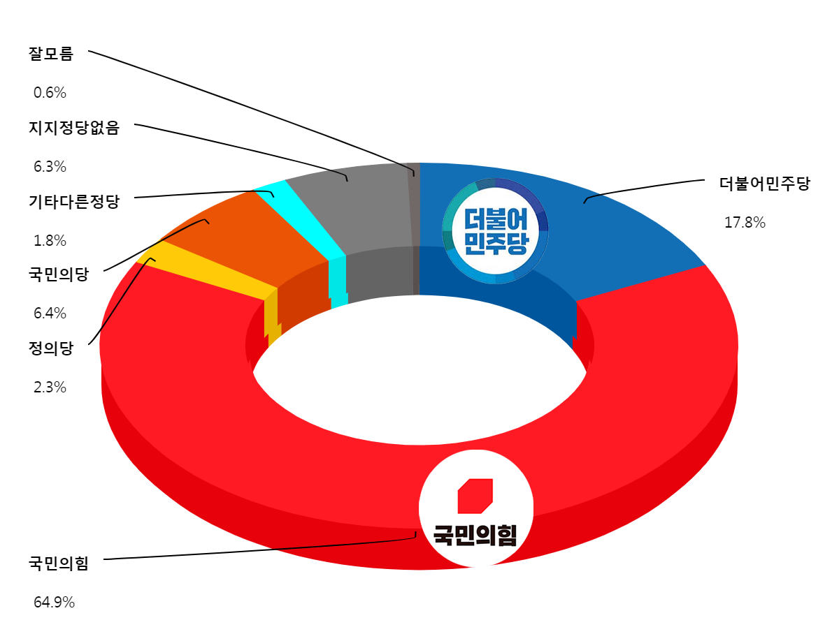 ´Þ¼±¸ Á¤´çÁöÁöµµ¡¥±¹¹ÎÀÇÈû 64.9%(¡è2.2%), ´õºÒ¾î¹ÎÁÖ´ç 17.8%(¡è2.1%)