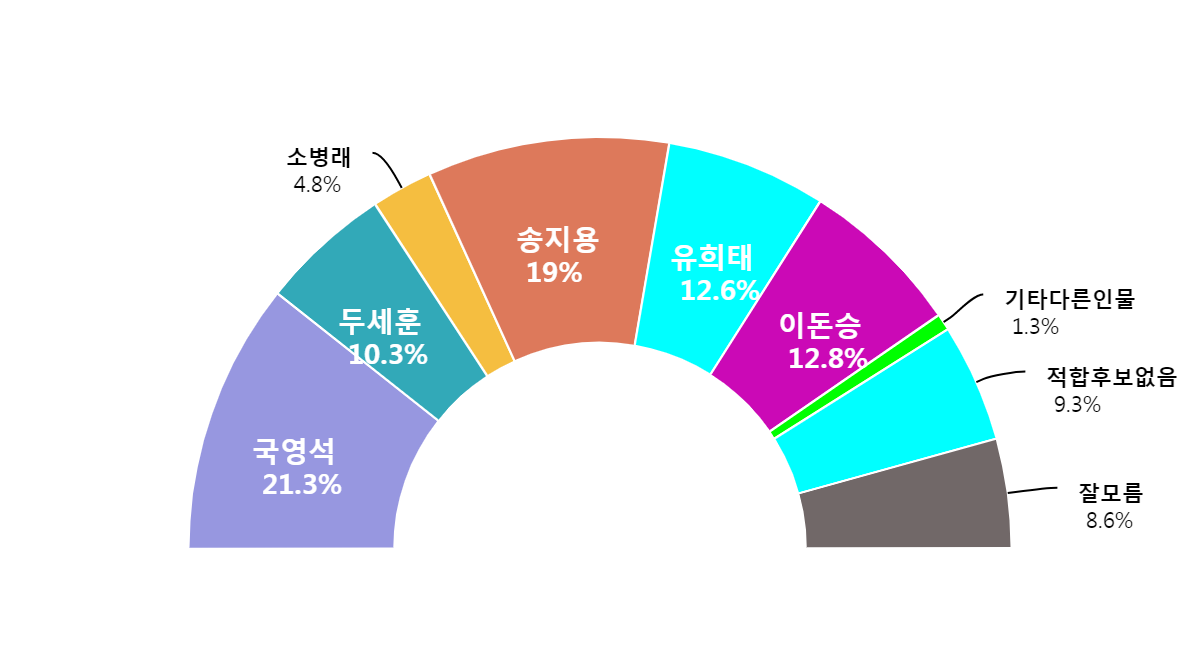 ¡Þ ±¹¿µ¼® 21.3%, 2À§ ¼ÛÁö¿ë(19.0%)¿¡ 2.3%p Â÷ÀÌ·Î ¾Õ¼