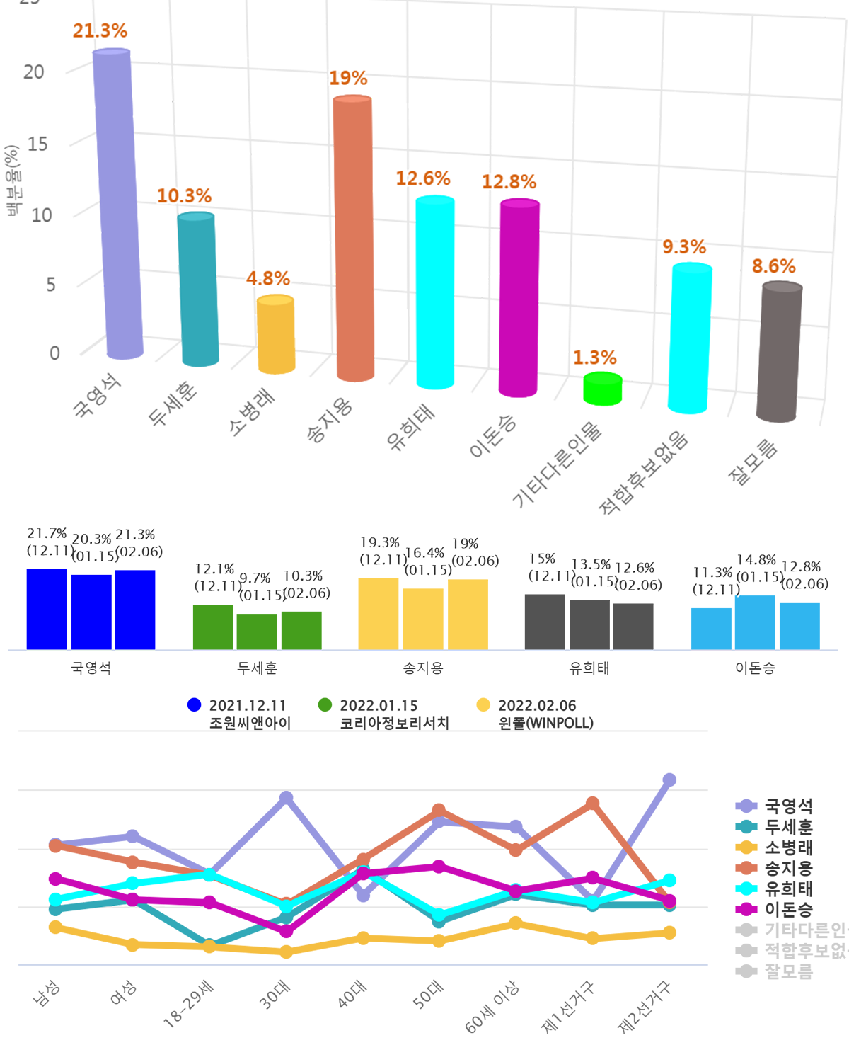 ¾ð·Ð»ç ¿ÏÁÖÀüÁֽŹ® ÀÇ·Ú·Î 2¿ù 5ÀÏ¿¡¼ 6ÀϱîÁö ÀÌÆ²°£ ½Ç½ÃÇÏ¿© 8ÀÏ ¹ßÇ¥µÈ ¡¸Â÷±â ¿ÏÁÖ±º¼ö Èĺ¸ ÀûÇÕµµ¡¹Á¶»ç¿¡¼ ±¹¿µ¼® Çö ¿ÏÁÖ°í»ê³óÇù Á¶ÇÕÀåÀº Á÷Àü Á¶»ç ´ëºñ 1.0%p ¿À¸¥ 21.3%·Î 1À§¸¦, ¼ÛÁö¿ë Çö ÀüºÏµµÀÇȸ ÀÇÀåÀº 2.6%p ¿À¸¥ 19.0%·Î 2À§¸¦, À̵·½Â Çö ¿ÏÁÖ±³À°°Å¹ø½º À§¿øÀåÀº 2.0%p ¶³¾îÁø 12.8%·Î 3À§¸¦, À¯ÈñÅ Çö ¹ÎÁÖ´çÁ¤Ã¥À§ ºÎÀÇÀåÀº 0.9%p ¶³¾îÁø 12.6%·Î 4À§¸¦, µÎ¼¼ÈÆ Çö ÀüºÏµµÀÇ¿øÀº 0.6%p ¿À¸¥ 10.3%·Î 5À§¸¦, ¼Òº´·¡ Àü ÀüºÏµµÀÇȸ ºÎÀÇÀåÀº 0.1%p ¶³¾îÁø 4.8%·Î 6À§¸¦ ÇÏ´Â °ÍÀ¸·Î ±â·ÏµÇ¾ú´Ù.