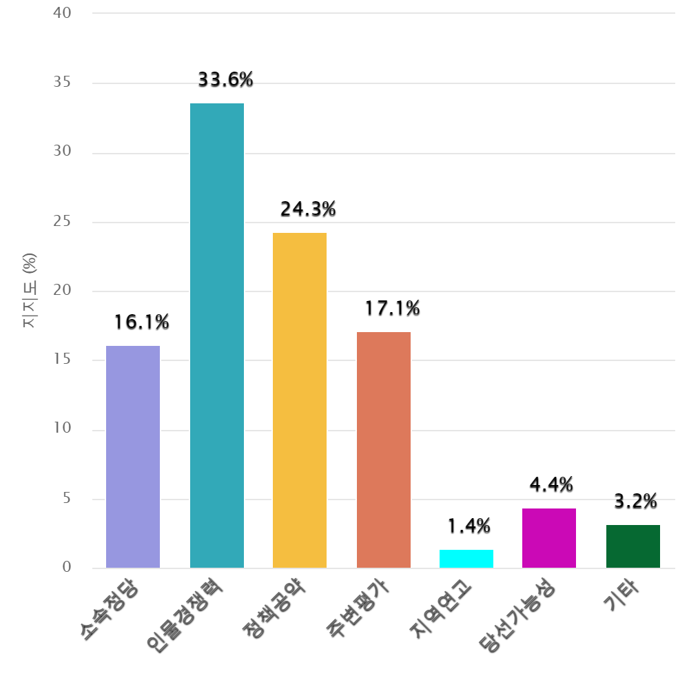 Ⱦ¼º±º¼ö Èĺ¸ ¼±ÅñâÁØ¡¥Àι°°æÀï·Â 33.6%, Á¤Ã¥°ø¾à 24.3%