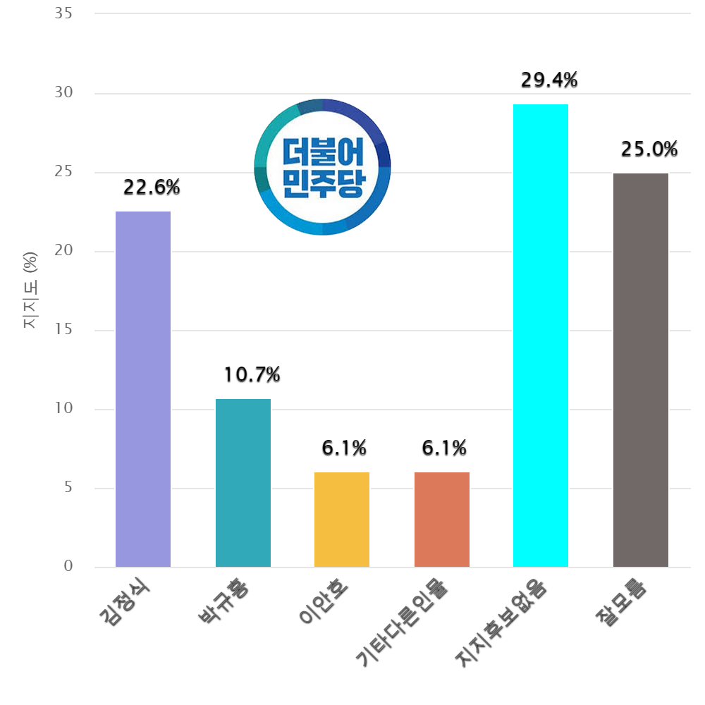 ´õºÒ¾î¹ÎÁÖ´ç ¹ÌÃßȦ±¸Ã»Àå Èĺ¸ ÁöÁöµµ¡¥±èÁ¤½Ä 22.6%, ¹Ú±ÔÈ« 10.7%