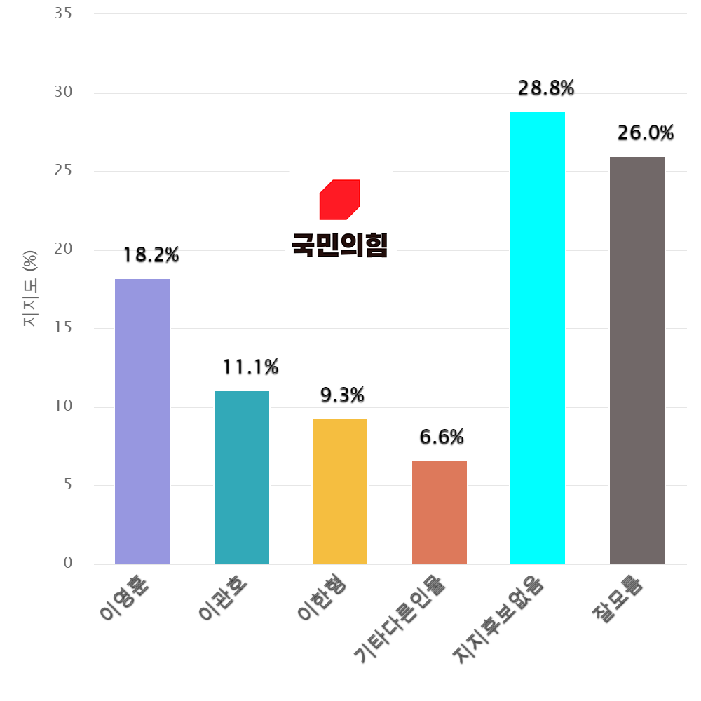 ¡ã ±¹¹ÎÀÇÈû ¹ÌÃßȦ±¸ Èĺ¸ ÁöÁöµµ¡¥ÀÌ¿µÈÆ 18.2%, À̰üÈ£ 11.1%, ÀÌÇÑÇü 9.3%
