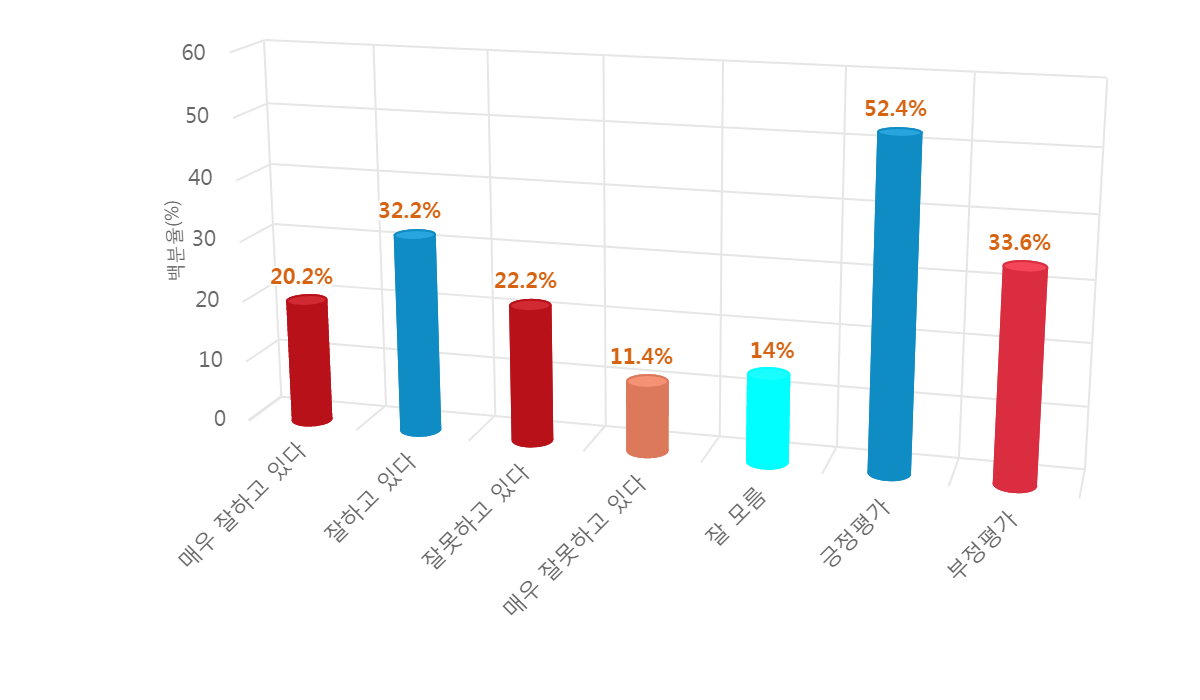 ¡Þ ±àÁ¤Æò°¡ 52.4%, ºÎÁ¤Æò°¡(33.6%)¿¡ 18.8%p ´õ ³ô¾Æ