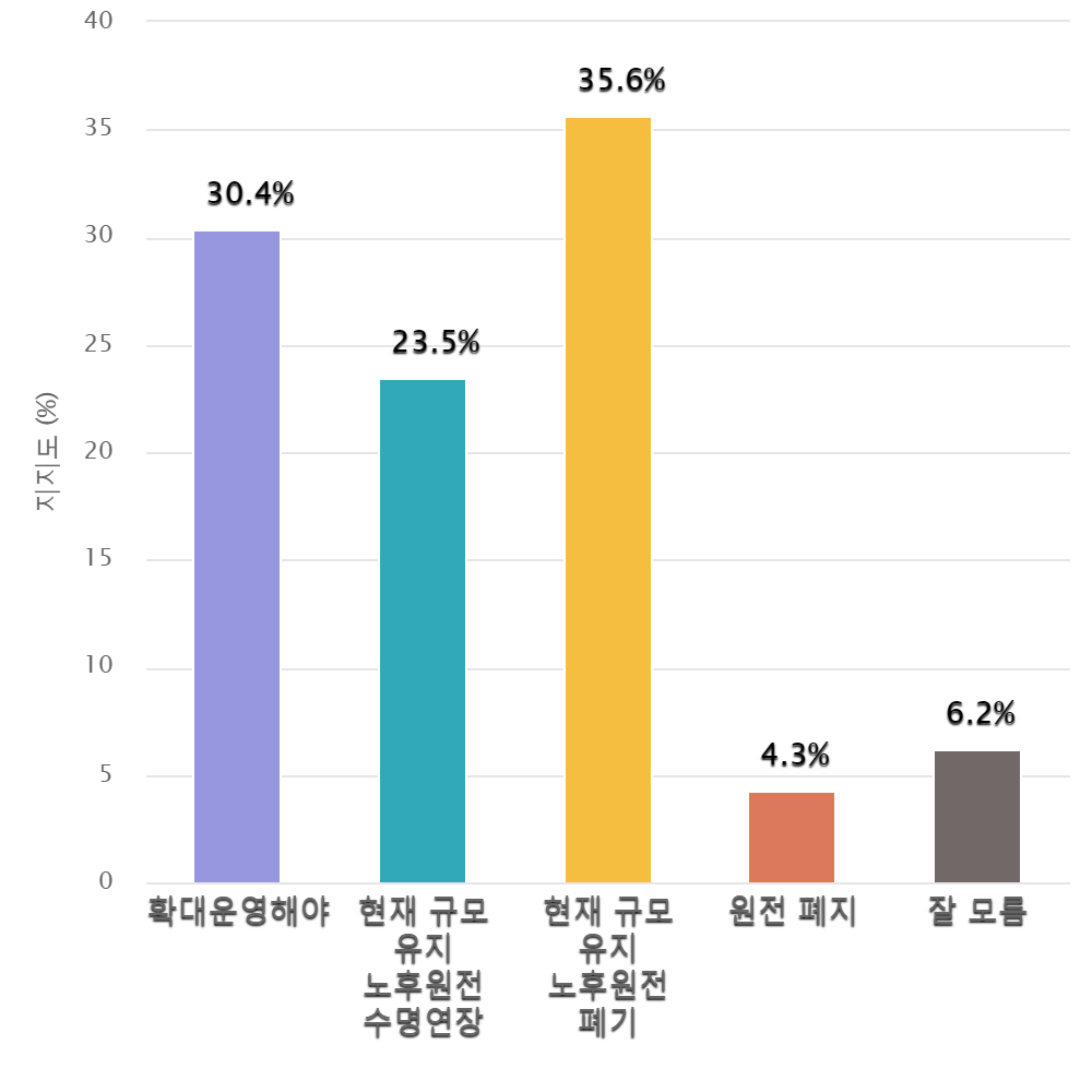 ¡¸¿ù¼º ¿øÀü Á¤Ã¥ Àǰߡ¹¸¦ ¹¯´Â Á¶»ç¿¡¼ ÁֹΠ´ë´Ù¼ö°¡ ¡¸ÇöÀç ±Ô¸ð À¯Áö ³ëÈÄ¿øÀü Æó±â¡¹ (35.6%)¿Í ¡¸È®´ë¿î¿µÇؾߡ¹ (30.4%)·Î ÀÀ´äÇÏ¿´°í ¡¸¿øÀü ÆóÁö¡¹ ´Â 4.3%¿¡ ±×ÃÆ´Ù.