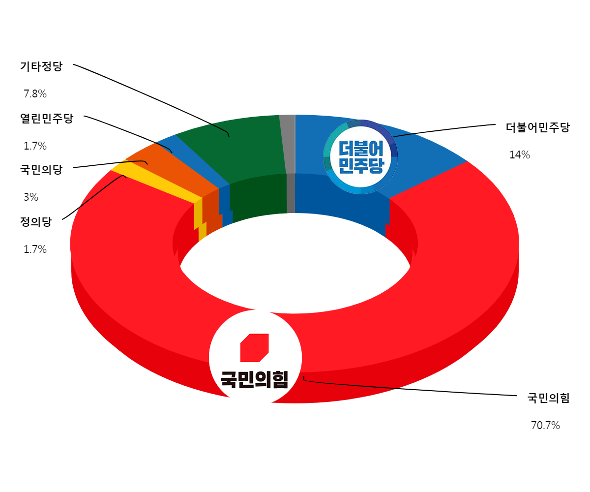 ¡Þ ±¹¹ÎÀÇÈû 70.7%, ´õºÒ¾î¹ÎÁÖ´ç(14.0%)¿¡ 56.7%p Â÷ÀÌ·Î ¾Õ¼