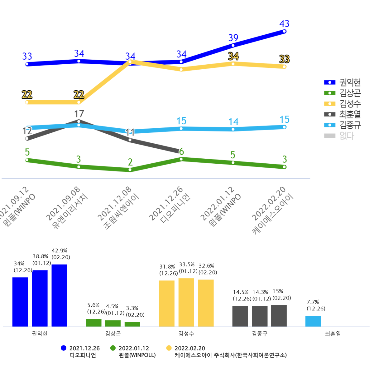 ¡ã Á÷ÀüÁ¶»ç´ëºñ ±ÇÀÍÇö 4.1%p »ó½Â(38.8%¡æ42.9%), ±èÁ¾±Ô 0.7%p »ó½Â(14.3%¡æ15.0%), ±è¼º¼ö 0.9%p Ç϶ô(33.5%¡æ32.6%), ±è»ó°ï 1.2%p Ç϶ô(4.5%¡æ3.3%)