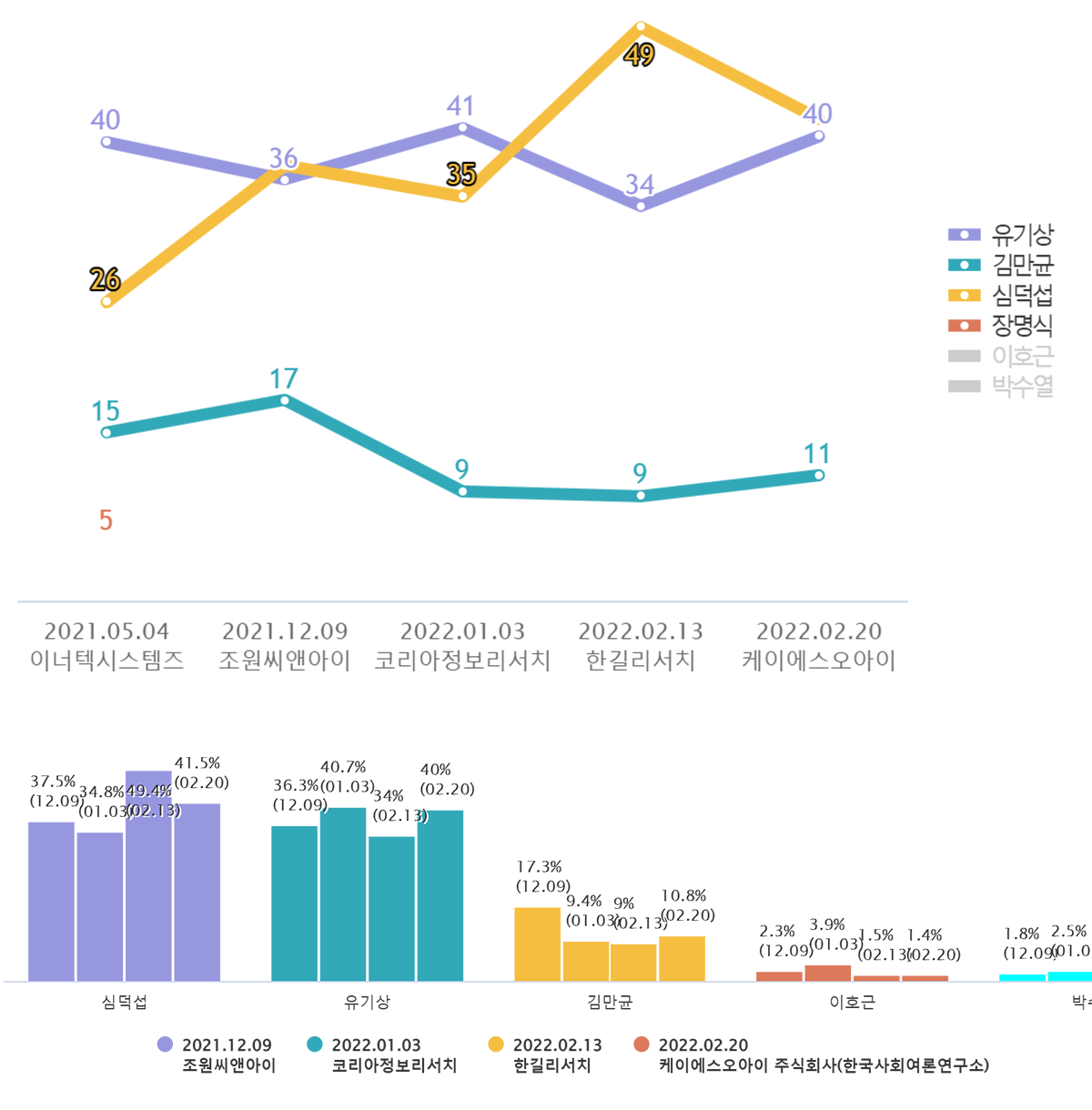 ¡ã °íⱺ¼ö Èĺ¸ÀûÇÕµµ¡¥½É´ö¼· 41.5%(7.9%¡é), À¯±â»ó 40.0%(6.0%¡è), ±è¸¸±Õ 10.8%(1.8%¡è), ¹Ú¼ö¿ 2.0%, ÀÌÈ£±Ù 1.4%(0.1%¡é)