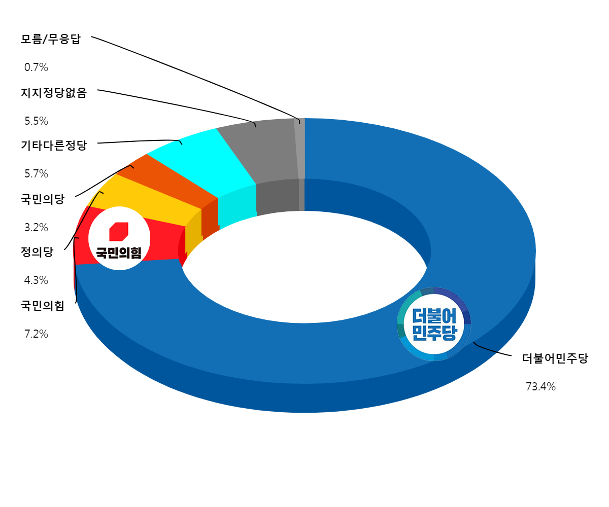 ¡ã °íⱺ Á¤´çÁöÁöµµ¡¥´õºÒ¾î¹ÎÁÖ´ç 73.4%, ±¹¹ÎÀÇÈû 7.2%, Á¤ÀÇ´ç 4.3%, ±¹¹ÎÀÇ´ç 3.2%