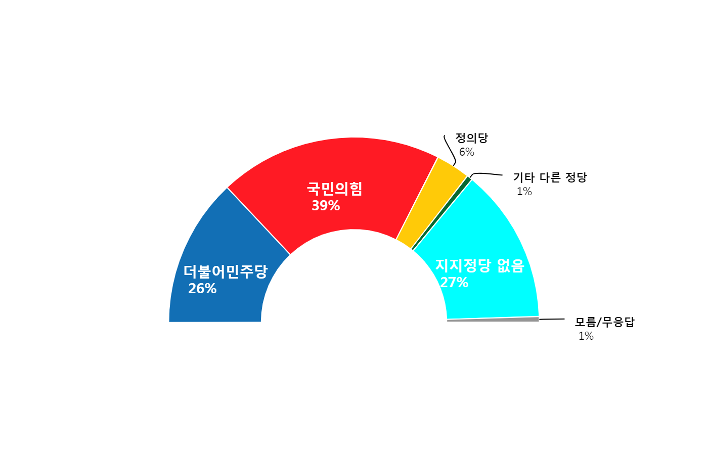 Á¤´çÁöÁöµµ¡¥±¹¹ÎÀÇÈû 39%, ´õºÒ¾î¹ÎÁÖ´ç 26%, Á¤ÀÇ´ç 6%