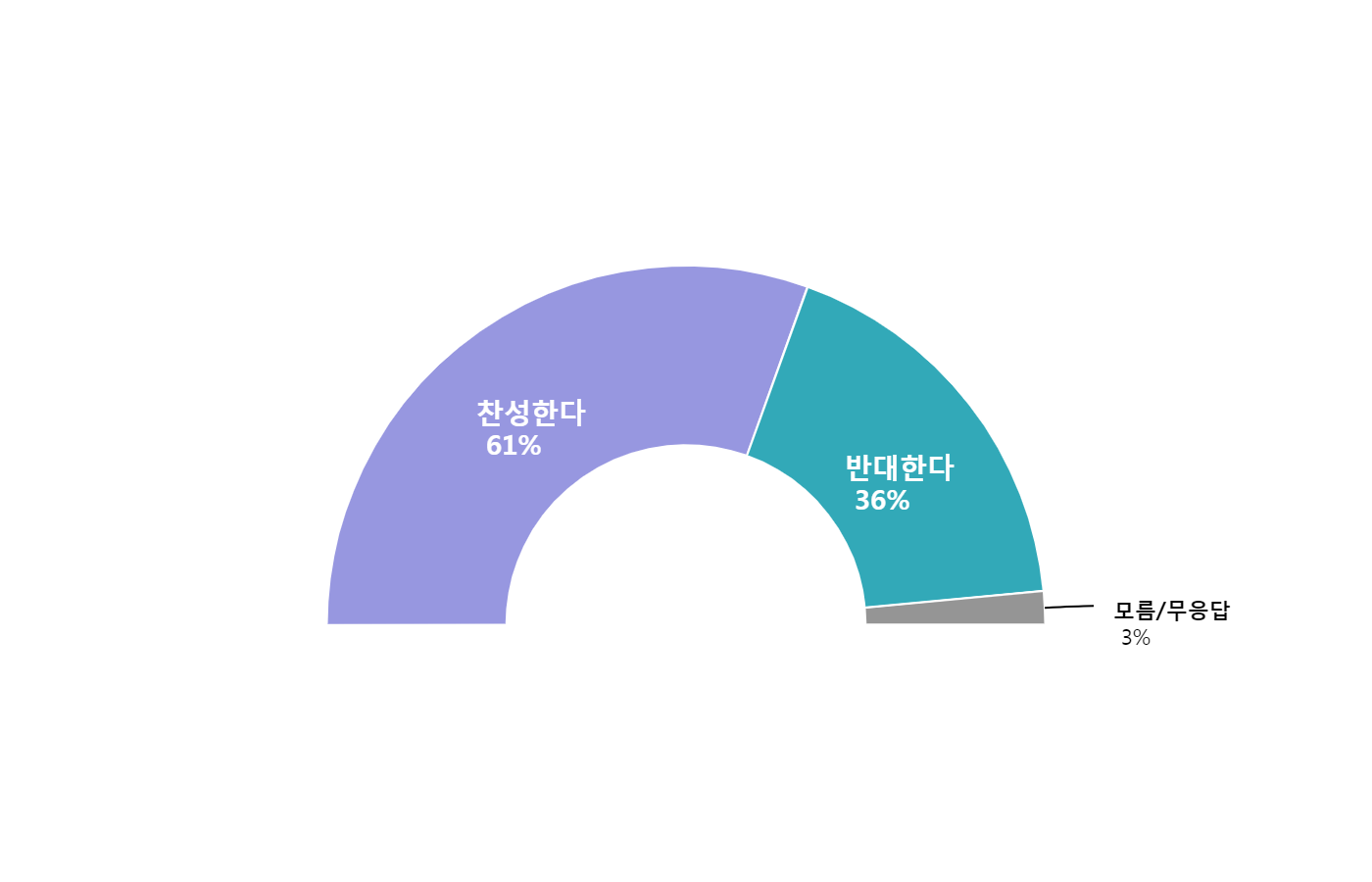 ¡Þ 'Âù¼ºÇÑ´Ù' 61%, '¹Ý´ëÇÑ´Ù'(36%)º¸´Ù 25%p ´õ ³ô¾Æ