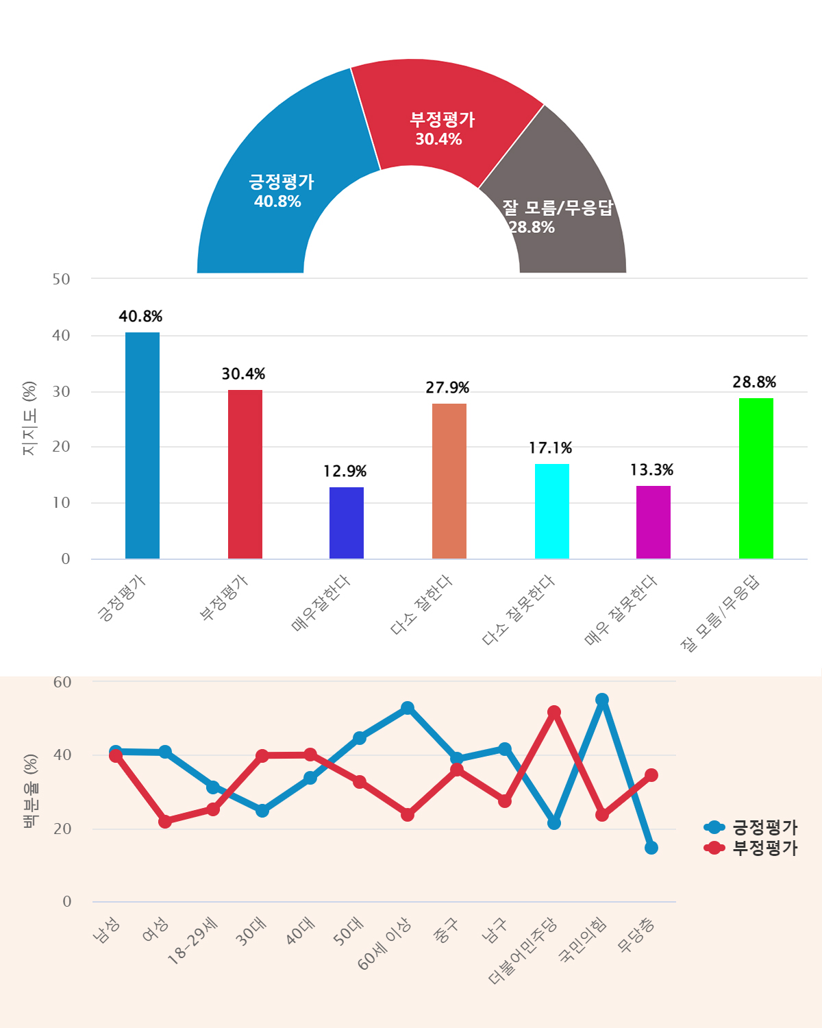 ¡Þ '±àÁ¤Æò°¡' 40.8%, 'ºÎÁ¤Æò°¡'(30.4%)º¸´Ù 10.4%p ´õ ³ô¾Æ