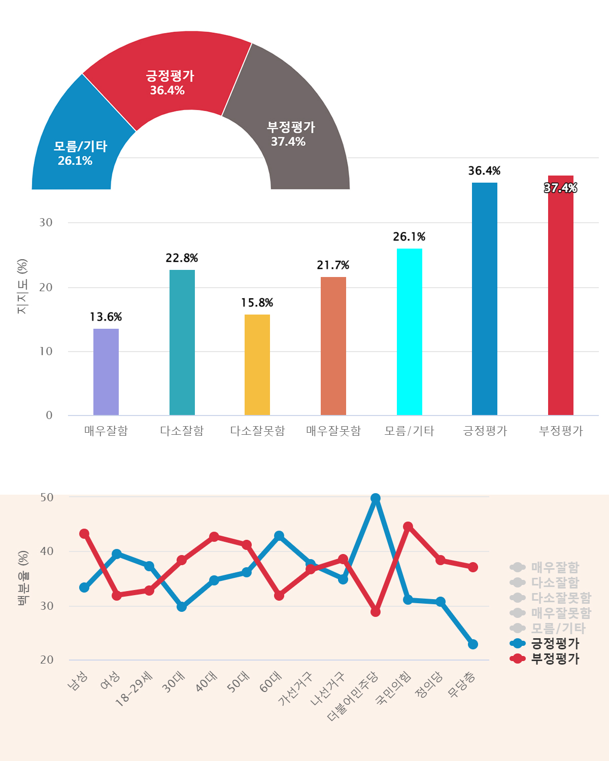 ¡Þ '±àÁ¤Æò°¡' 38.1%, 'ºÎÁ¤Æò°¡'(37.1%)º¸´Ù 1%p ´õ ³ô¾Æ