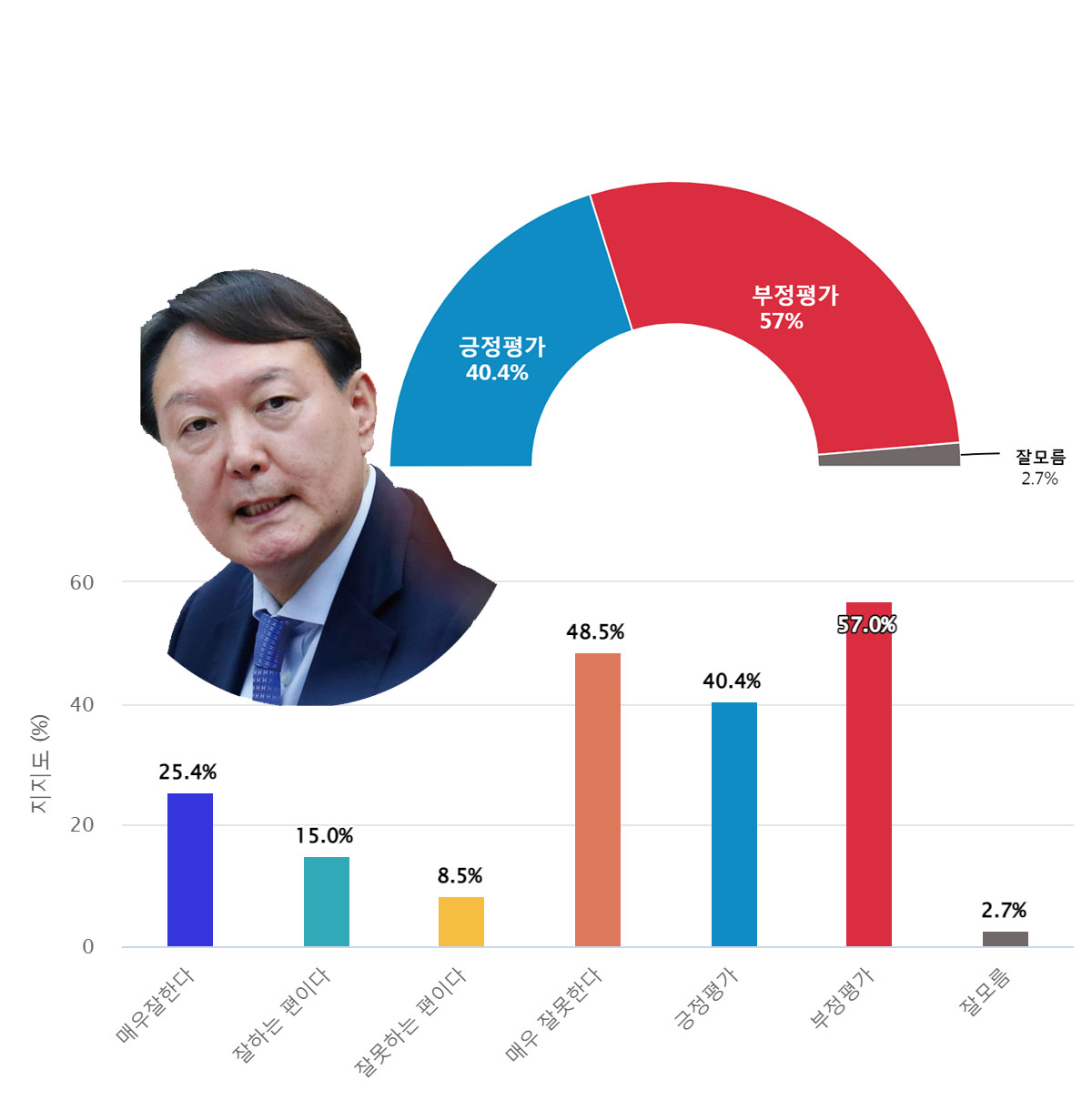À̹ø Á¶»ç´Â Á÷Àü Á¶»ç(2023³â 2¿ù 13ÀÏ)¿Í´Â ´Þ¸® ÁöÁöÀ²ÀÇ º¯È¸¦ º¸¿©ÁÖ°í ÀÖ´Ù.¹Ý´ë·Î ¡¸ºÎÁ¤Æò°¡¡¹´Â Á÷Àü Á¶»ç ´ëºñ 0.5%p(57.5%¡æ57%) Ç϶ôÇÏ¿© °¡Àå Å« Ç϶ô¼¼¸¦ º¸¿´´Ù.