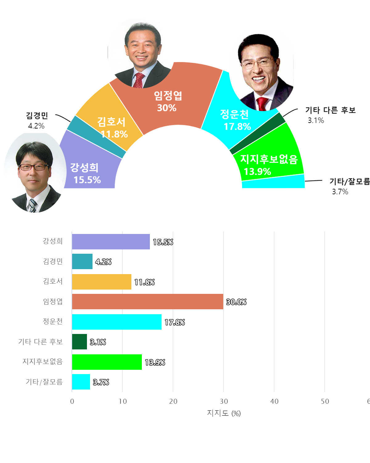 Á¶»ç±â°ü Á¶¿ø¾¾¾Ø¾ÆÀ̰¡ 2¿ù 24ÀÏ¿¡¼ 25ÀϱîÁö ÀÌÆ²°£ ½Ç½ÃÇÏ¿© 27ÀÏ ¹ßÇ¥ÇÑ ¡¸ÀüÁÖ½ÃÀ» ±¹È¸ÀÇ¿ø Èĺ¸ ÁöÁöµµ¡¹¸¦ ¹¯´Â Á¶»ç¿¡¼ ¡¸ÀÓÁ¤¿±¡¹È帰¡ 30%¸¦ ±â·ÏÇÏ¿© 2À§ ¡¸Á¤¿îõ¡¹Èĺ¸(17.8%)¿¡ 12.2%p Â÷ÀÌ·Î ¾Õ¼ ³ª°¡¸ç, µÚ¸¦ ÀÌ¾î ¡¸°¼ºÈñ¡¹È帰¡ 15.5%, ¡¸±èÈ£¼¡¹È帰¡ 11.8%, ¡¸±è°æ¹Î¡¹È帰¡ 4.2%¸¦ ÇÏ´Â °ÍÀ¸·Î ±â·ÏµÇ¾ú´Ù.