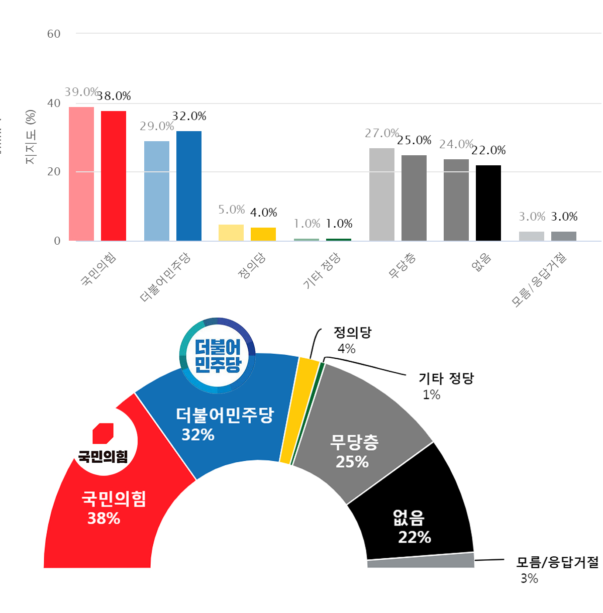 ¤ýÁ¤´çÁöÁöµµ¡¥±¹¹ÎÀÇÈû 38%, ´õºÒ¾î¹ÎÁÖ´ç 32%, ¹«´çÃþ 25%