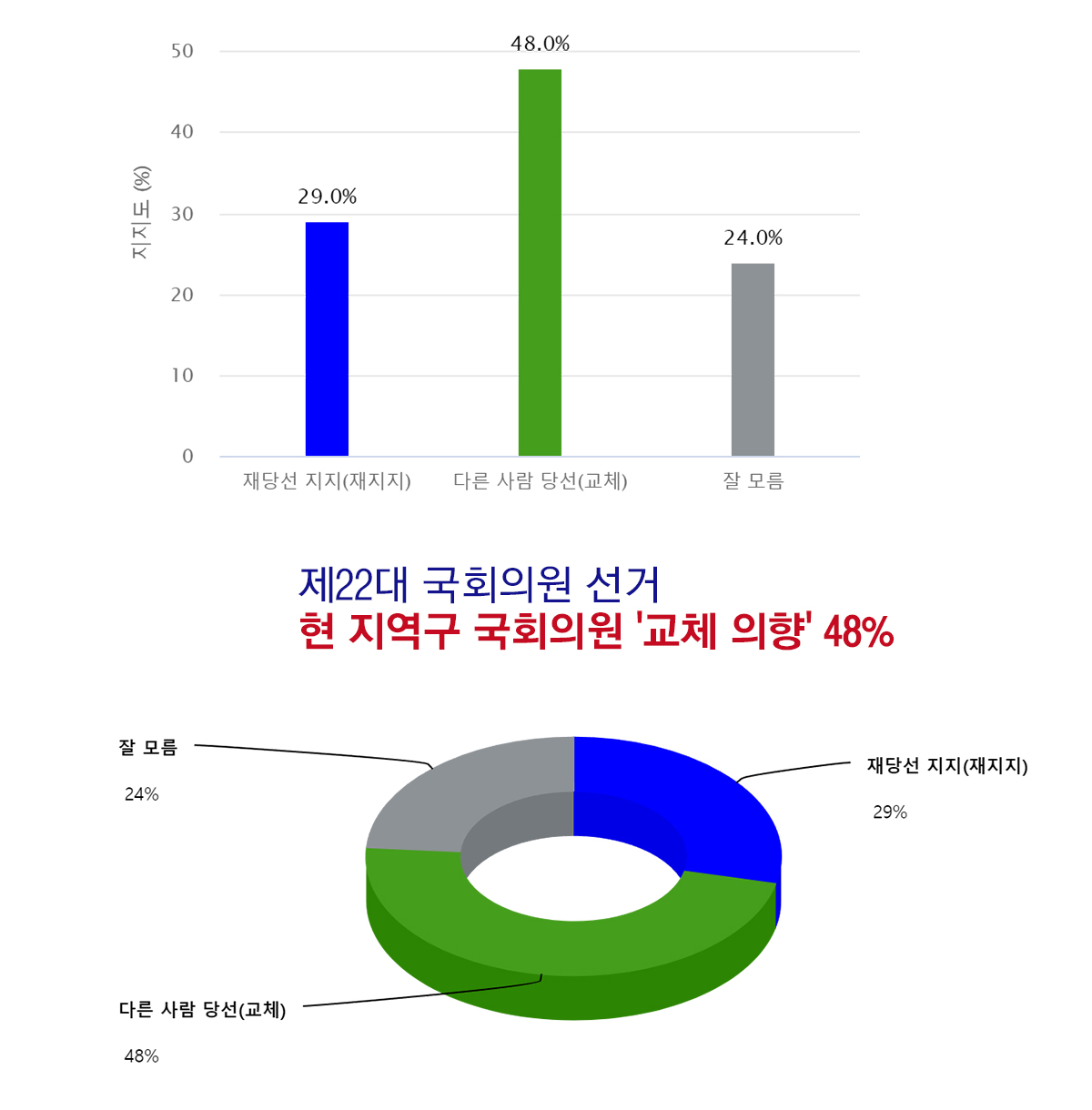 ³»³â ½Ç½ÃµÉ Á¦22´ë ±¹È¸ÀÇ¿ø ¼±°Å¸¦ 1³â¿© ¾ÕµÐ ½ÃÁ¡¿¡¼ ½Ç½ÃµÈ ¿©·ÐÁ¶»ç¿¡¼ 'Çö Áö¿ª±¸ ±¹È¸ÀÇ¿øÀ» ´Ù½Ã ÁöÁöÇϰڴÙ'´Â ÀÀ´äÀº 29%¿¡ ºÒ°úÇÑ °ÍÀ¸·Î ³ª¿Ô´Ù. ¹Ý´ë·Î '»õ·Î¿î Àι°·Î ±³Ã¼ ÀÇÇâ'Àº 48%·Î °ú¹Ý¿¡ ±ÙÁ¢Çß´Ù.