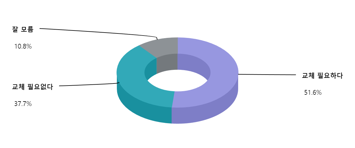 ¡Þ '±³Ã¼ ÇÊ¿äÇÏ´Ù' 51.6%, 2À§ '±³Ã¼ ÇÊ¿ä¾ø´Ù'(37.7%)¿¡ 13.9%p ´õ ³ô¾Æ