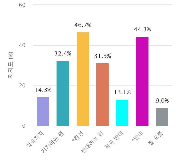 ¡Þ 'Âù¼º' 46.7%, 2À§ '¹Ý´ë'(44.3%)¿¡ 2.4%p ´õ ³ô¾Æ