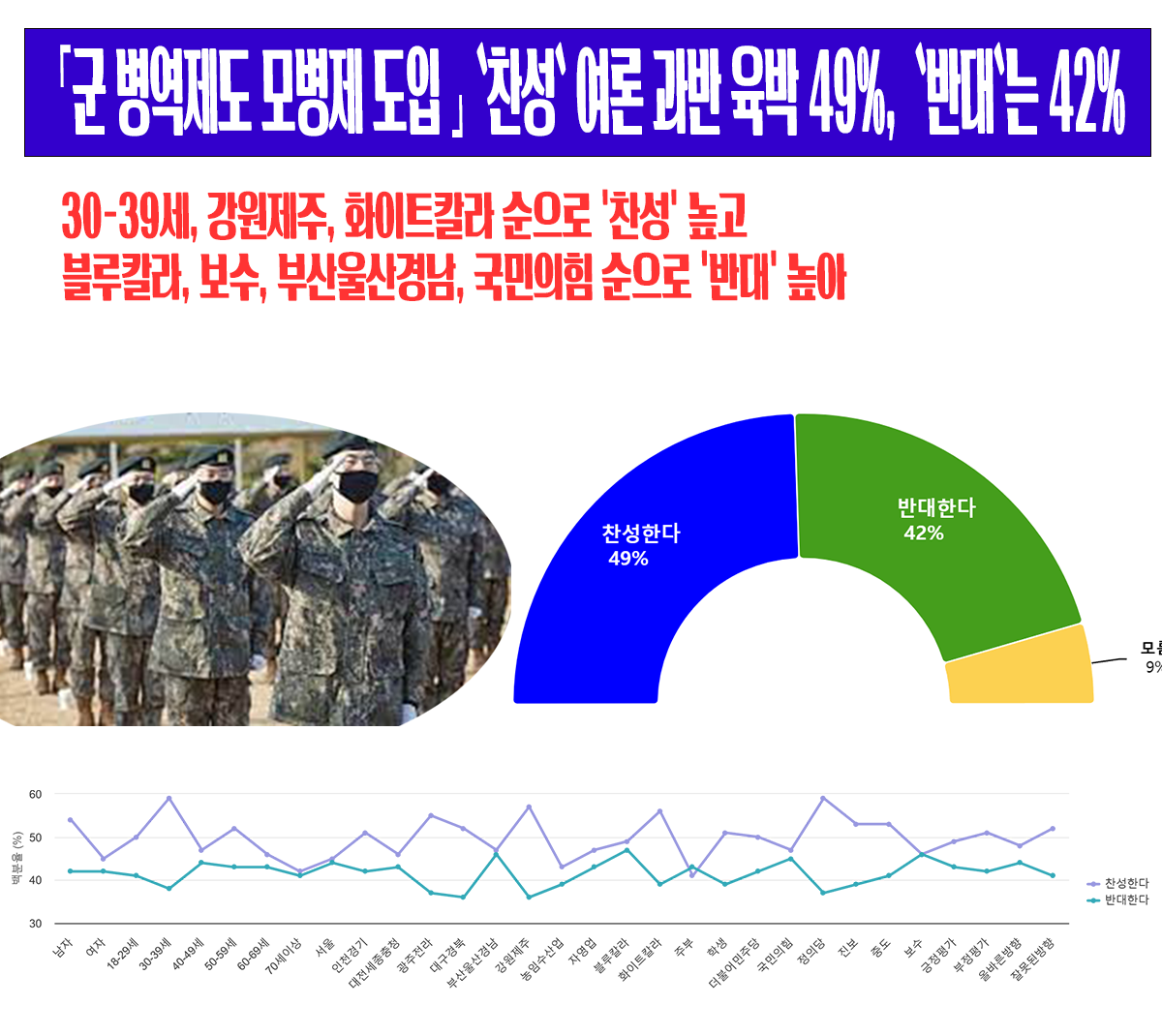 ¡¸±º º´¿ªÁ¦µµ ¸ðº´Á¦ µµÀÔ ¡¹ 'Âù¼º' ¿©·Ð °ú¹Ý À°¹Ú 49%, '¹Ý´ë'(42%)º¸´Ù 7%p ´õ ³ô¾Æ