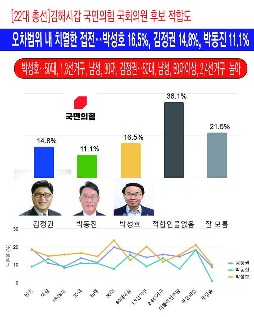 ±èÇØ½Ã°© ±¹È¸ÀÇ¿ø ÀûÇÕµµ¡¥¿ÀÂ÷¹üÀ§ ³» Ä¡¿­ÇÑ Á¢Àü¡¥¹Ú¼ºÈ£ 16.5%, ±èÁ¤±Ç 14.8%, ¹Úµ¿Áø 11.1%