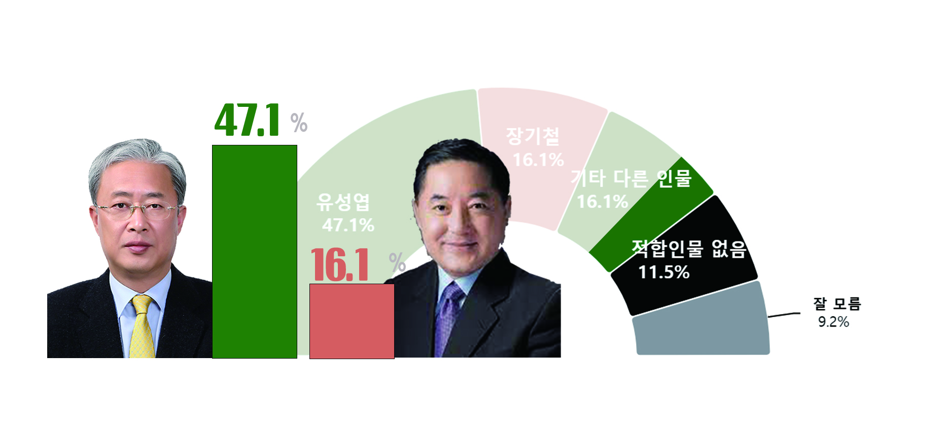 ³»³â Á¦22´ë ±¹È¸ÀÇ¿ø ¼±°Å¸¦ 234ÀÏ ¾ÕµÎ°í Á¶»çµÈ ÀüºÏ Á¤À¾½Ã, °íⱺ ¼±°Å±¸ ¡¸À¯¼º¿±-Àå±âö ¾çÀÚ´ë°á ÁöÁöµµ¡¹¿©·ÐÁ¶»ç¿¡¼ 'À¯¼º¿±' È帰¡ 47.1%,'Àå±âö' È帰¡ 16.1%¸¦ ±â·ÏÇß´Ù.