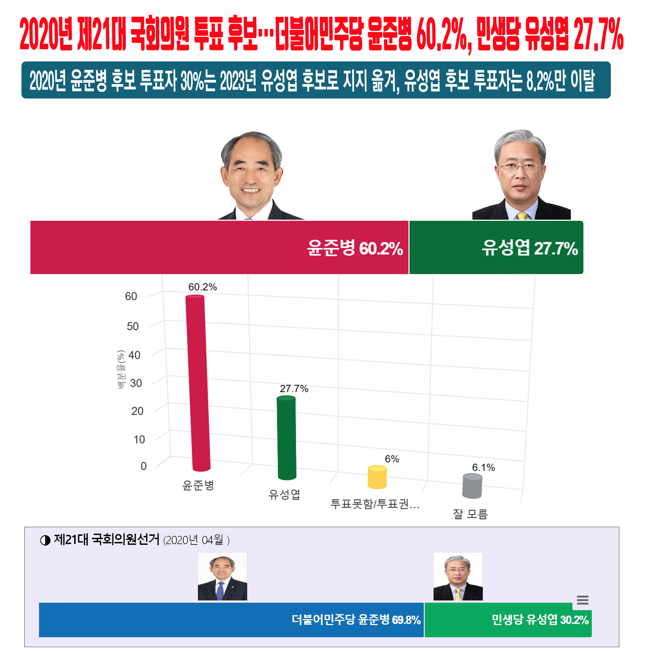 2020³â À±Áغ´ Èĺ¸ ÅõÇ¥ÀÚ 30%´Â 2023³â À¯¼º¿± È帷ΠÁöÁö ¿Å°Ü, À¯¼º¿± Èĺ¸ ÅõÇ¥ÀÚ´Â 8.2%¸¸ À±Áغ´ È帷ΠÀ̵¿