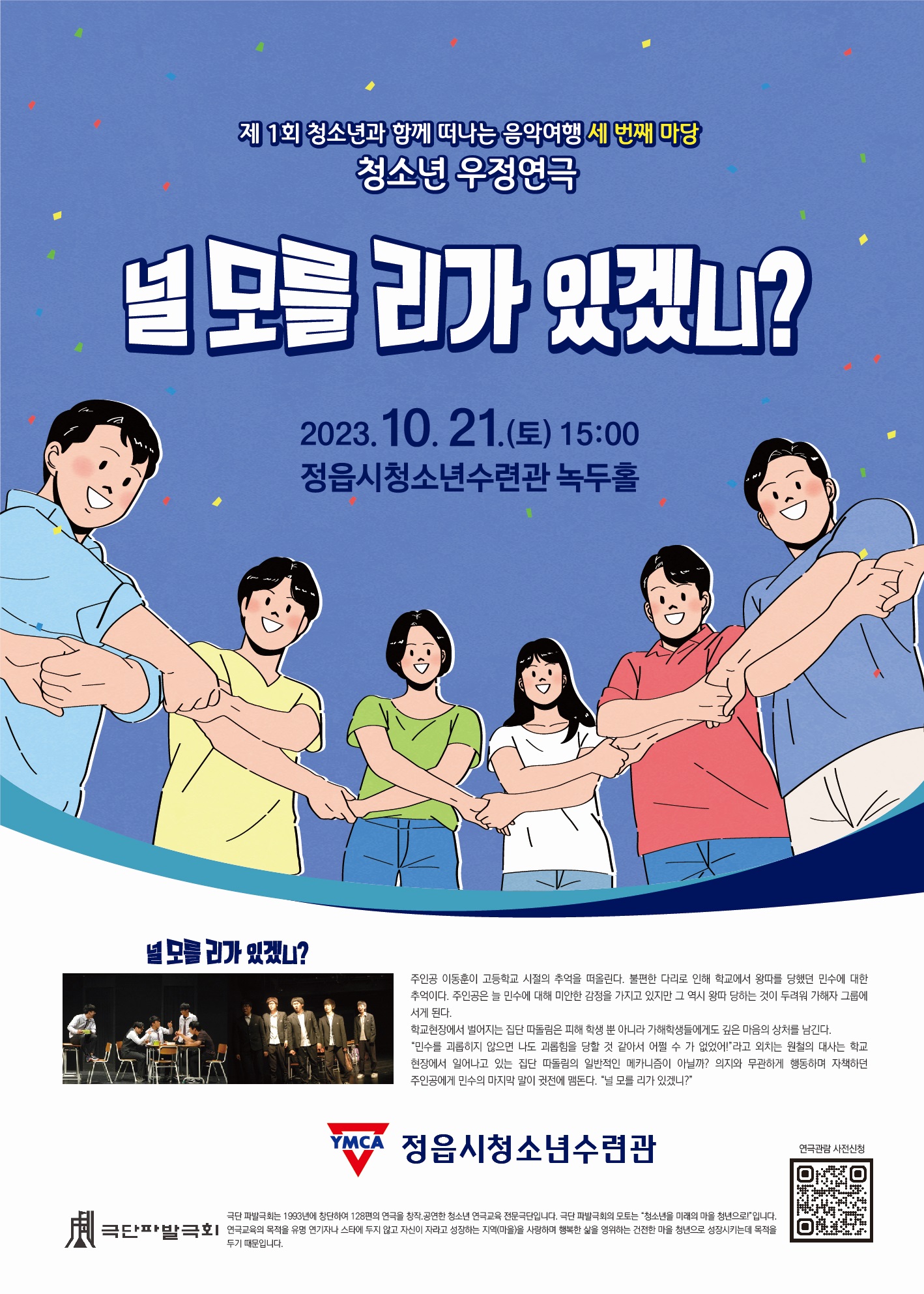 À̹ø °ø¿¬Àº û¼Ò³âµé¿¡°Ô ´Ù¾çÇÑ ¹®È ÇâÀ¯ÀÇ ±âȸ¸¦ ÁÖ°íÀÚ Á¤À¾½Ã ÈÄ¿øÀ¸·Î ÁغñµÆ´Ù. û¼Ò³â ¿¬±Ø Àü¹®±Ø´ÜÀÎ ¡®±Ø´Ü ÆÄ¹ß±ØÈ¸¡¯°¡ Ãâ¿¬ÇØ ¹ÂÁöÄà ¡®¿µ¿õ¡¯ °¥¶ó¼î¸¦ ½ÃÀÛÀ¸·Î Çб³Æø·ÂÀ» ÁÖÁ¦·Î ÇÑ Ã»¼Ò³â ¿¬±Ø ¡®³Î ¸ð¸¦ ¸®°¡ ÀÖ°Ú´Ï?¡¯ °ø¿¬ÀÌ ÆîÃÄÁø´Ù.