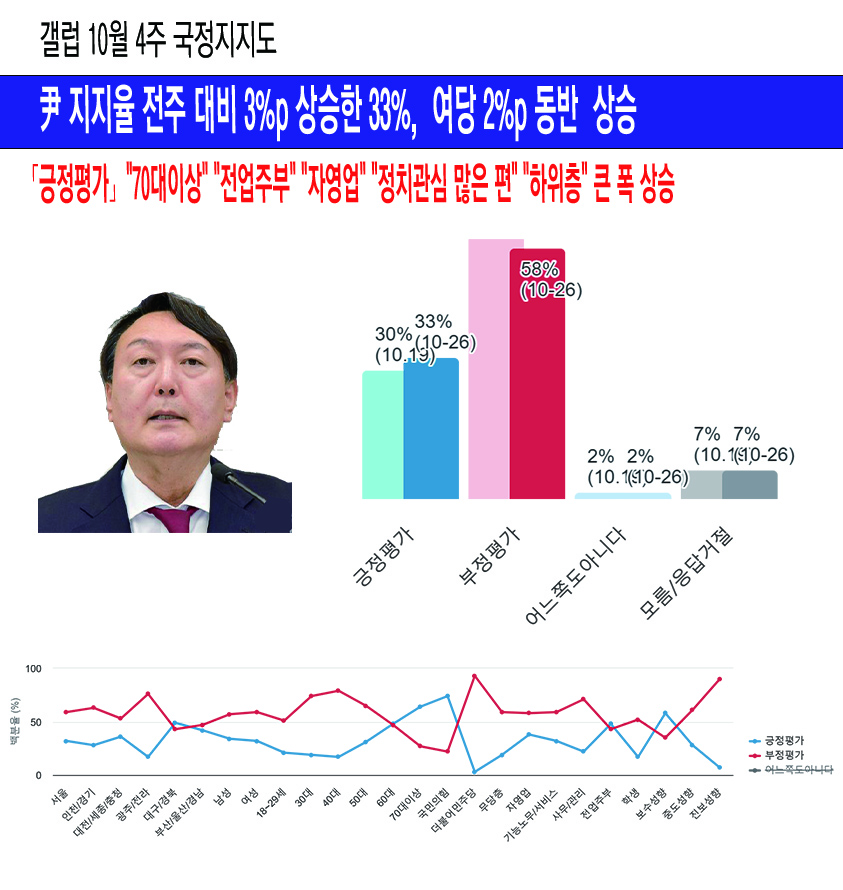 [°¶·´10¿ù4ÁÖ]ëÅ ÁöÁöÀ² ÀüÁÖ ´ëºñ 3%p »ó½ÂÇÑ 33%, ¿©´ç 2%p µ¿¹Ý »ó½Â