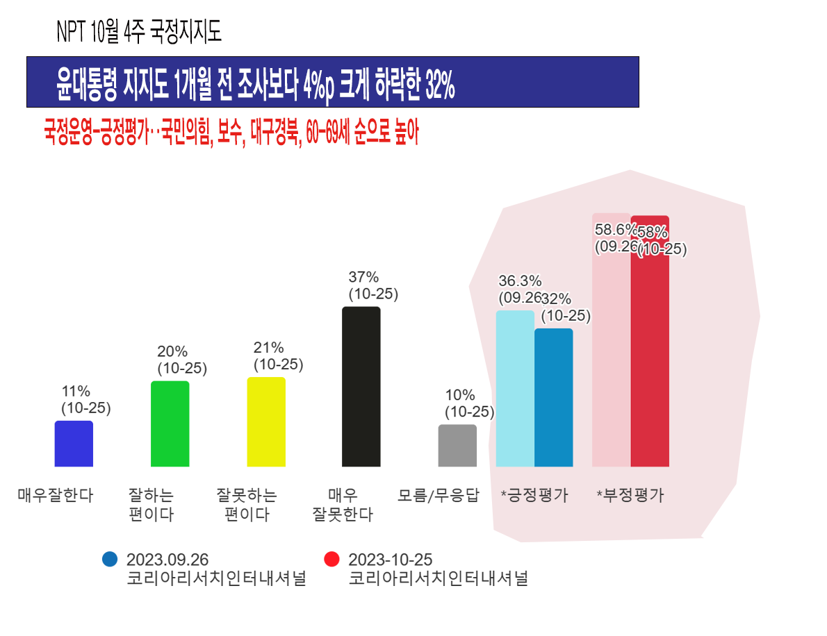 [NPT 10¿ù 4ÁÖ] À±´ëÅë·É ÁöÁöµµ 1°³¿ùÀü Á¶»çº¸´Ù 4%p Å©°Ô Ç϶ôÇÑ 32%