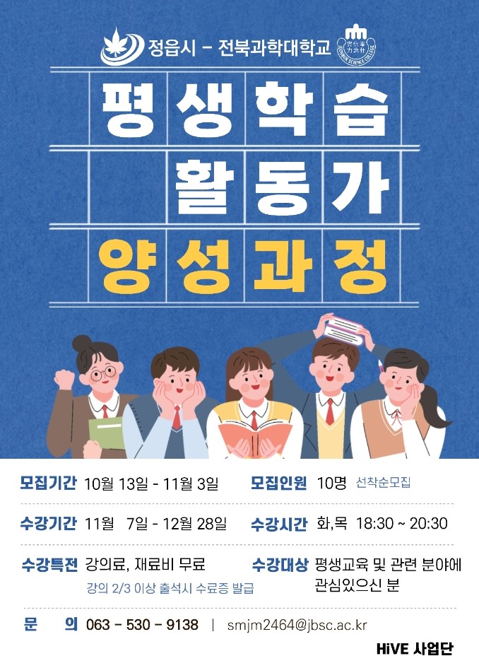 Á¤À¾½Ã´Â ½Ã¹Î¿¡°Ô Æò»ýÇнÀ ¹®È¸¦ È®»êÇϰíÀÚ ÀüºÏ°úÇдëÇб³¿Í ÇÔ²² ÀüºÏ ÃÖÃʷΡ®Æò»ýÇнÀ Ȱµ¿°¡ ¾ç¼º °úÁ¤¡¯À» °³¹ßÇÏ°í ¼ö°»ýÀ» ¸ðÁýÇÑ´Ù.