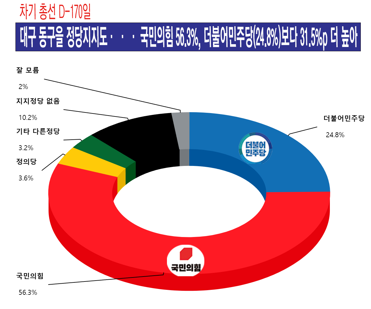 Á¤´çÁöÁöµµ¡¥±¹¹ÎÀÇÈû 56.3%, ´õºÒ¾î¹ÎÁÖ´ç 24.8%, Á¤ÀÇ´ç 3.6%