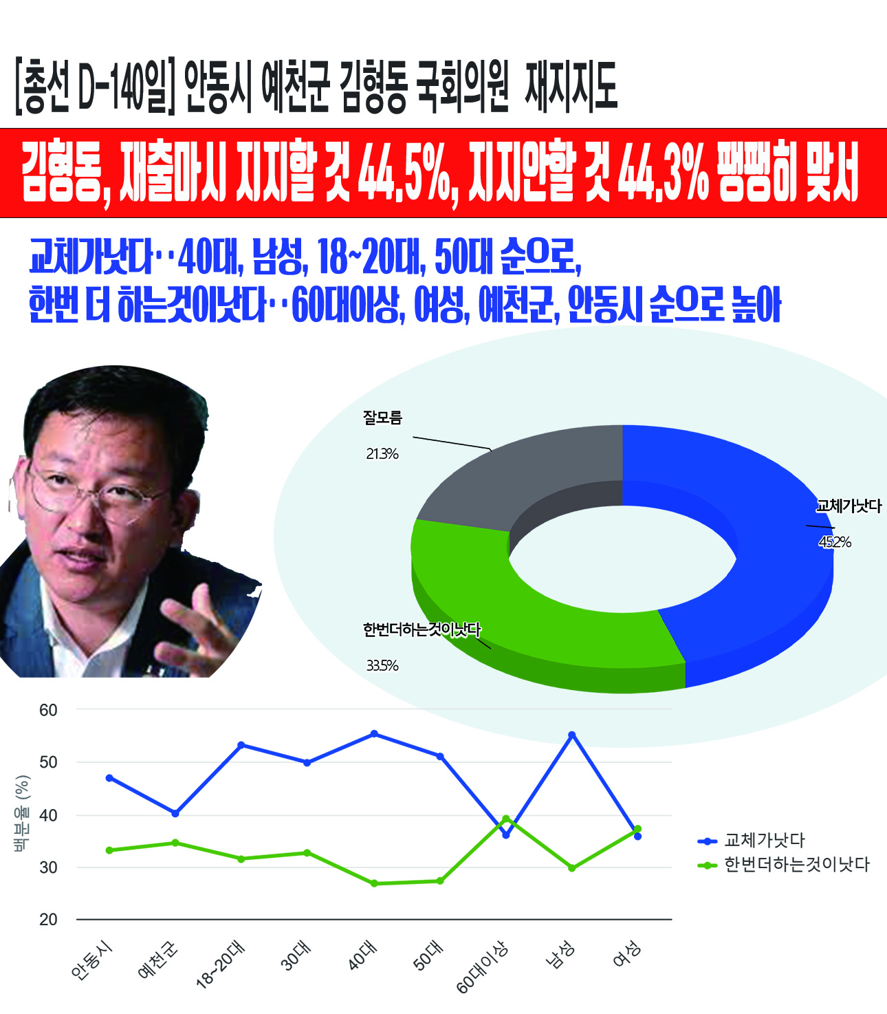 [ÃѼ± D-140ÀÏ] ¾Èµ¿½Ã ¿¹Ãµ±º ±èÇüµ¿ ±¹È¸ÀÇ¿ø ÀçÃ⸶½Ã ÁöÁöÇÒ °Í 44.5%, ÁöÁö¾ÈÇÒ °Í 44.3% ÆØÆØÈ÷ ¸Â¼, ±³Ã¼ Èñ¸ÁÀº 45.2%