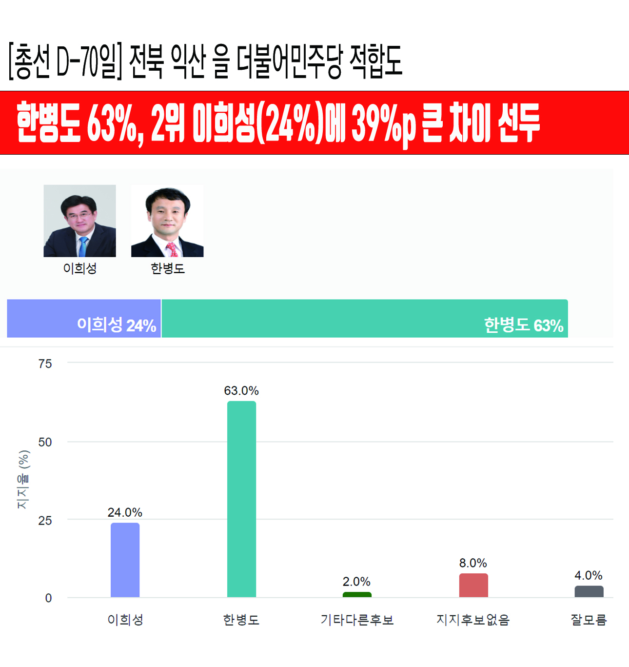 [ÃѼ± D-70ÀÏ] ÀüºÏ ÀÍ»ê À» ´õºÒ¾î¹ÎÁÖ´ç ÀûÇÕµµ¡¤¡¤¡¤ÇѺ´µµ 63%, 2À§ ÀÌÈñ¼º(24%)¿¡ 39%p Å« Â÷ÀÌ ¼±µÎ