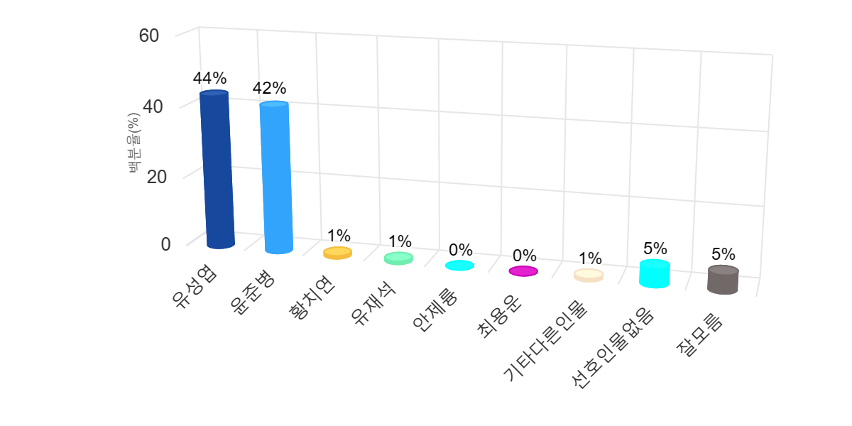 "³²¼º"Àº ¡¸À¯¼º¿±¡¹55.9% > ¡¸À±Áغ´¡¹36.0% , "¿©¼º"Àº ¡¸À¯¼º¿±¡¹52.5% > ¡¸À±Áغ´¡¹40.4% ¼øÀ¸·Î ÀÀ´äµÇ¾ú´Ù.