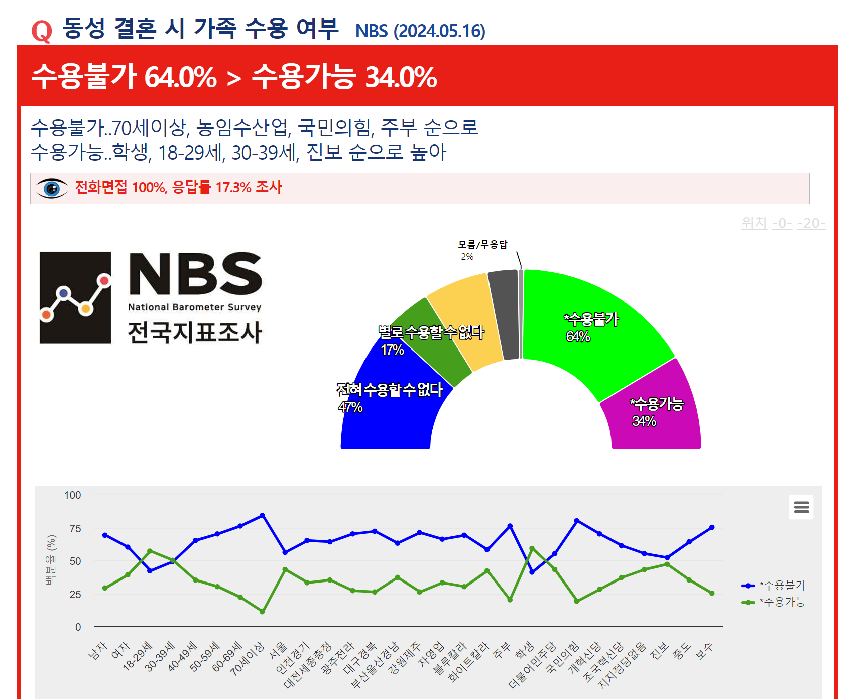 µ¿¼º °áÈ¥ ½Ã °¡Á· ¼ö¿ë ¿©ºÎ(Çѱ¹¸®¼Ä¡, ÀÀ´ä·ü 17.3%, 100% ¸éÁ¢¿ø Á¶»ç, 2024.05.16°øÇ¥)