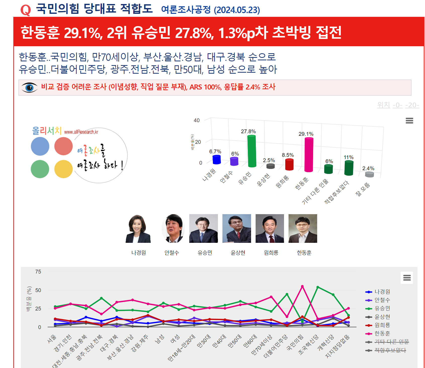 ±¹¹ÎÀÇÈû ´ç´ëÇ¥ ÀûÇÕµµ(¿©·ÐÁ¶»ç°øÁ¤, ÀÀ´ä·ü 2.4%, 100% ARS Á¶»ç, 2024.05.23°øÇ¥)