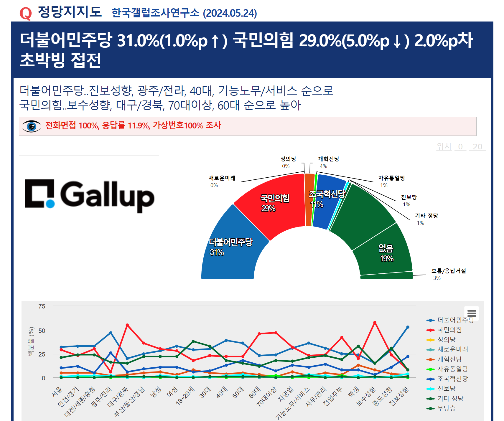 Á¤´çÁöÁöµµ(Çѱ¹°¶·´Á¶»ç¿¬±¸¼Ò, ÀÀ´ä·ü 11.9%, 100% ¸éÁ¢¿ø Á¶»ç, 2024.05.24°øÇ¥)