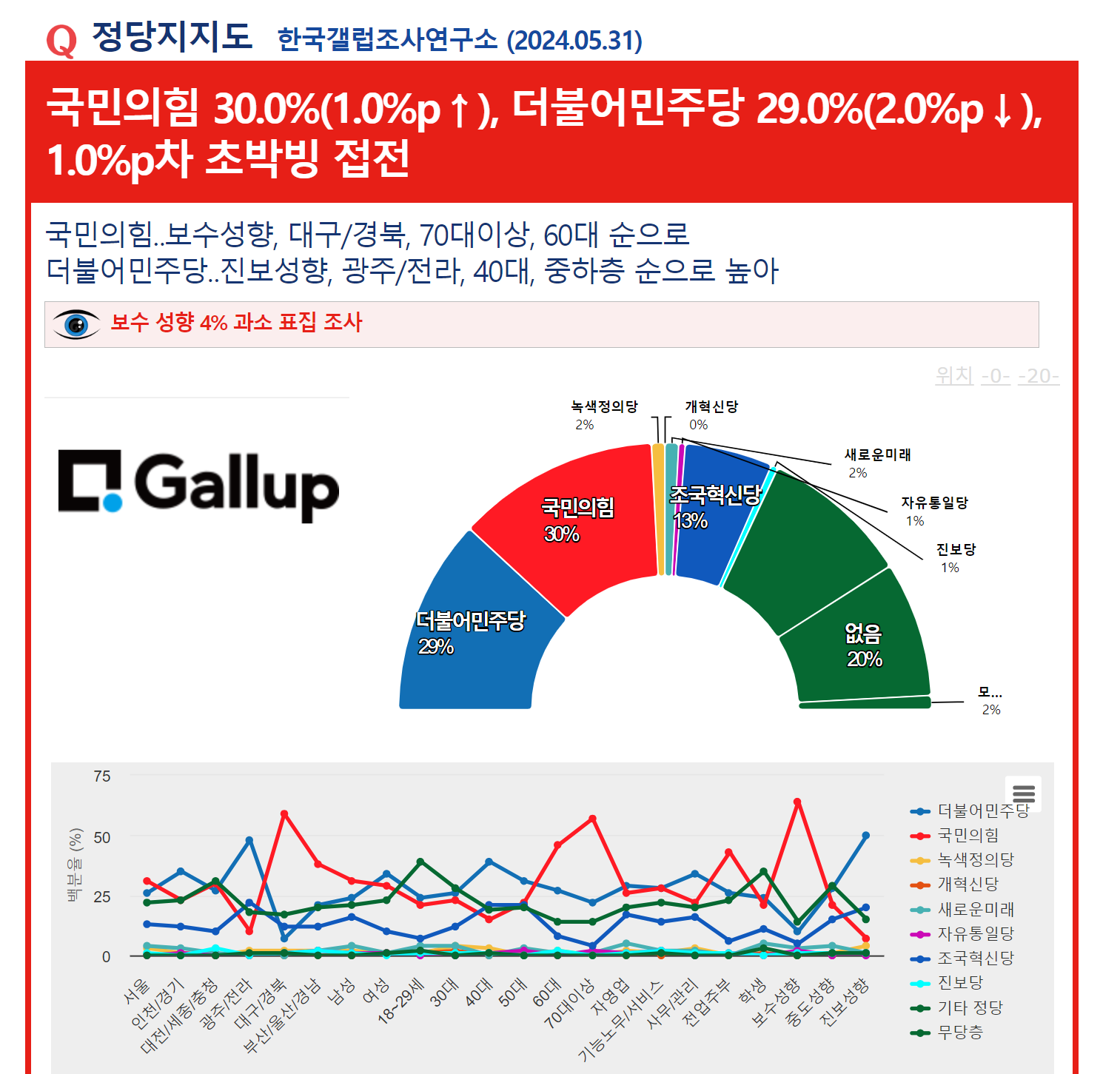¡ã ¡¸±¹¹ÎÀÇÈû¡¹ ¹«Á÷/ÀºÅð/±âŸ(14%¡è), 70´ëÀÌ»ó(10%¡è), º¸¼ö¼ºÇâ(6%¡è)ÀÀ´äÃþ Å« Æø »ó½Â, ¡¸Á¶±¹Çõ½Å´ç¡¹ 40´ë(8%¡è), ´ë±¸/°æºÏ(6%¡è)ÀÀ´äÃþ Å« Æø »ó½Â, ¡¸¹«´çÃþ¡¹ Áøº¸¼ºÇâ(7%¡è), ´ëÀü/¼¼Á¾/ÃæÃ»(7%¡è)ÀÀ´äÃþ Å« Æø »ó½Â