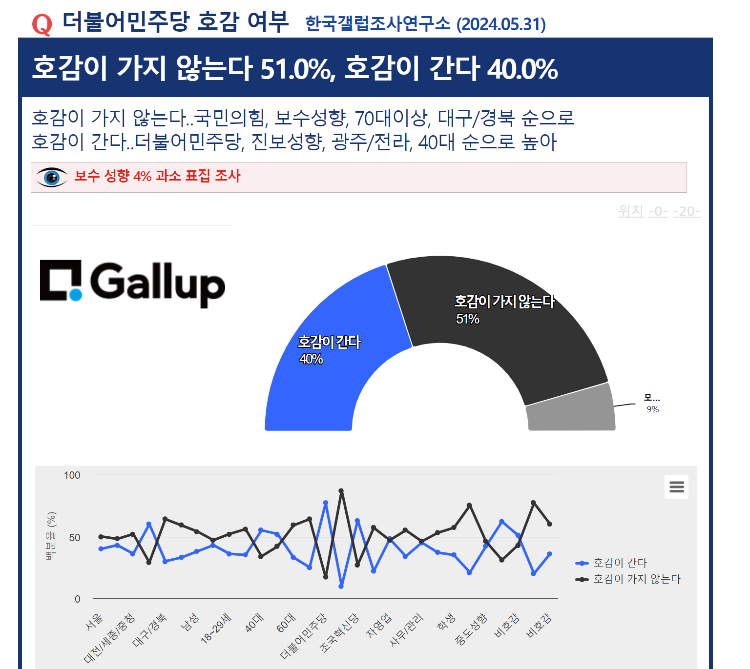 ´õºÒ¾î¹ÎÁÖ´ç È£°¨ ¿©ºÎ(Çѱ¹°¶·´Á¶»ç¿¬±¸¼Ò, ÀÀ´ä·ü 11.1%, 100% ¸éÁ¢¿ø Á¶»ç, 2024.05.31°øÇ¥)