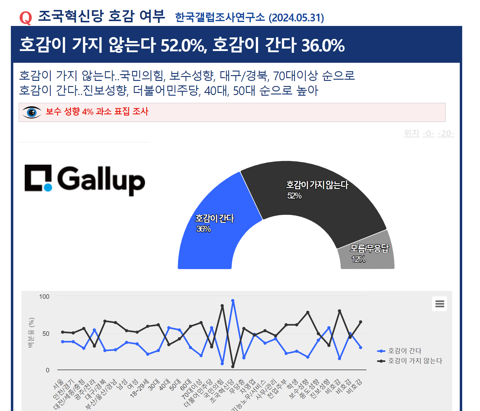 Á¶±¹Çõ½Å´ç È£°¨ ¿©ºÎ(Çѱ¹°¶·´Á¶»ç¿¬±¸¼Ò, ÀÀ´ä·ü 11.1%, 100% ¸éÁ¢¿ø Á¶»ç, 2024.05.31°øÇ¥)