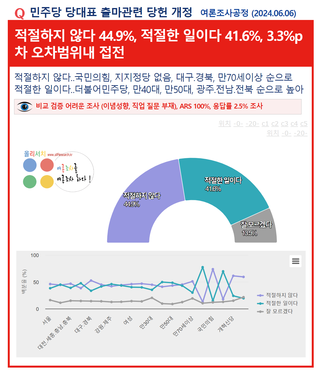¤ý¹ÎÁÖ´ç ´ç´ëÇ¥ Ã⸶°ü·Ã ´çÇå °³Á¤¡¥ÀûÀýÇÏÁö ¾Ê´Ù 44.9%, ÀûÀýÇÑ ÀÏÀÌ´Ù 41.6%