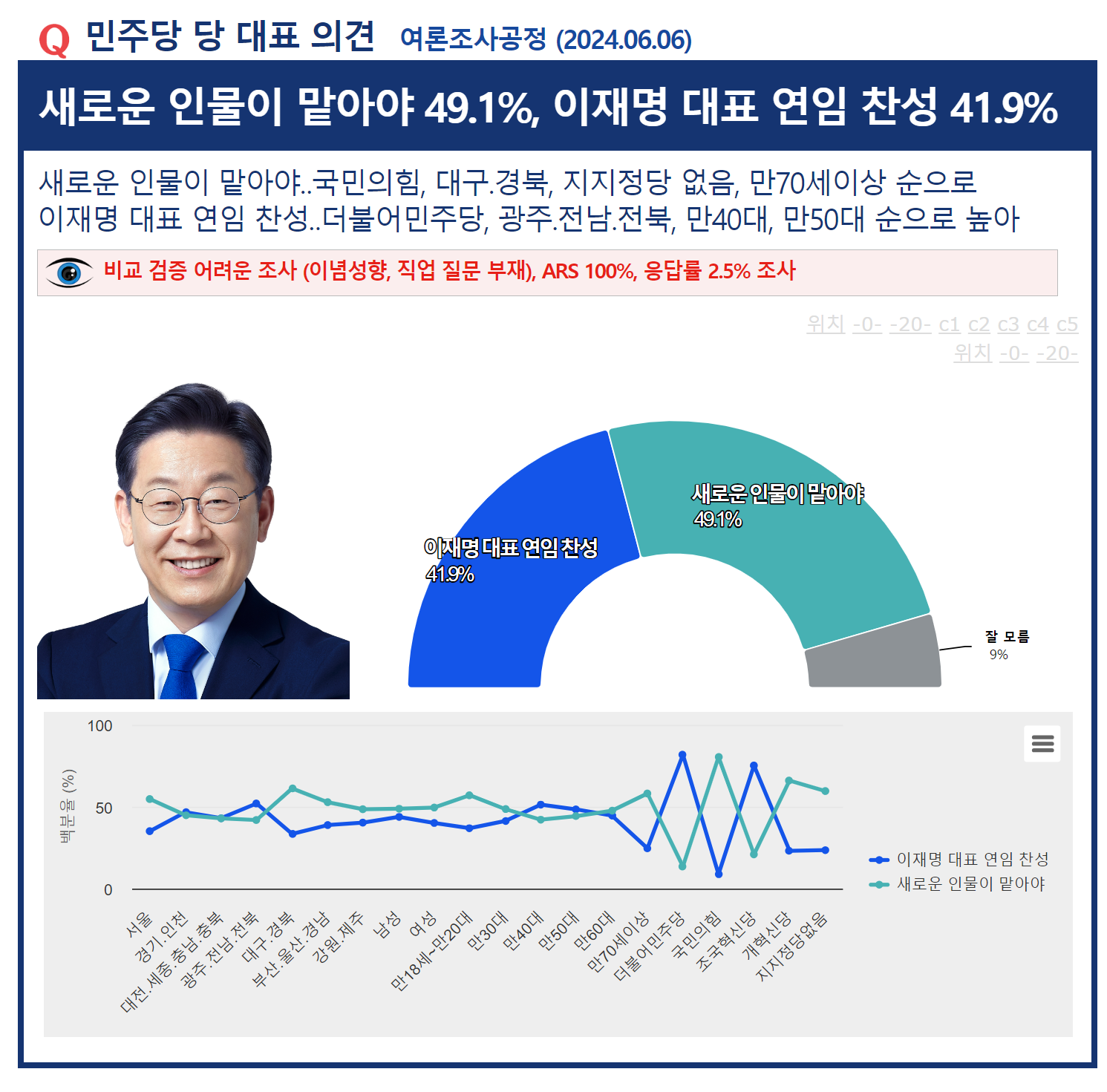 ¹ÎÁÖ´ç ´ç ´ëÇ¥ Àǰß(¿©·ÐÁ¶»ç°øÁ¤, ÀÀ´ä·ü 2.5%, 100% ARS Á¶»ç, 2024.06.06°øÇ¥)