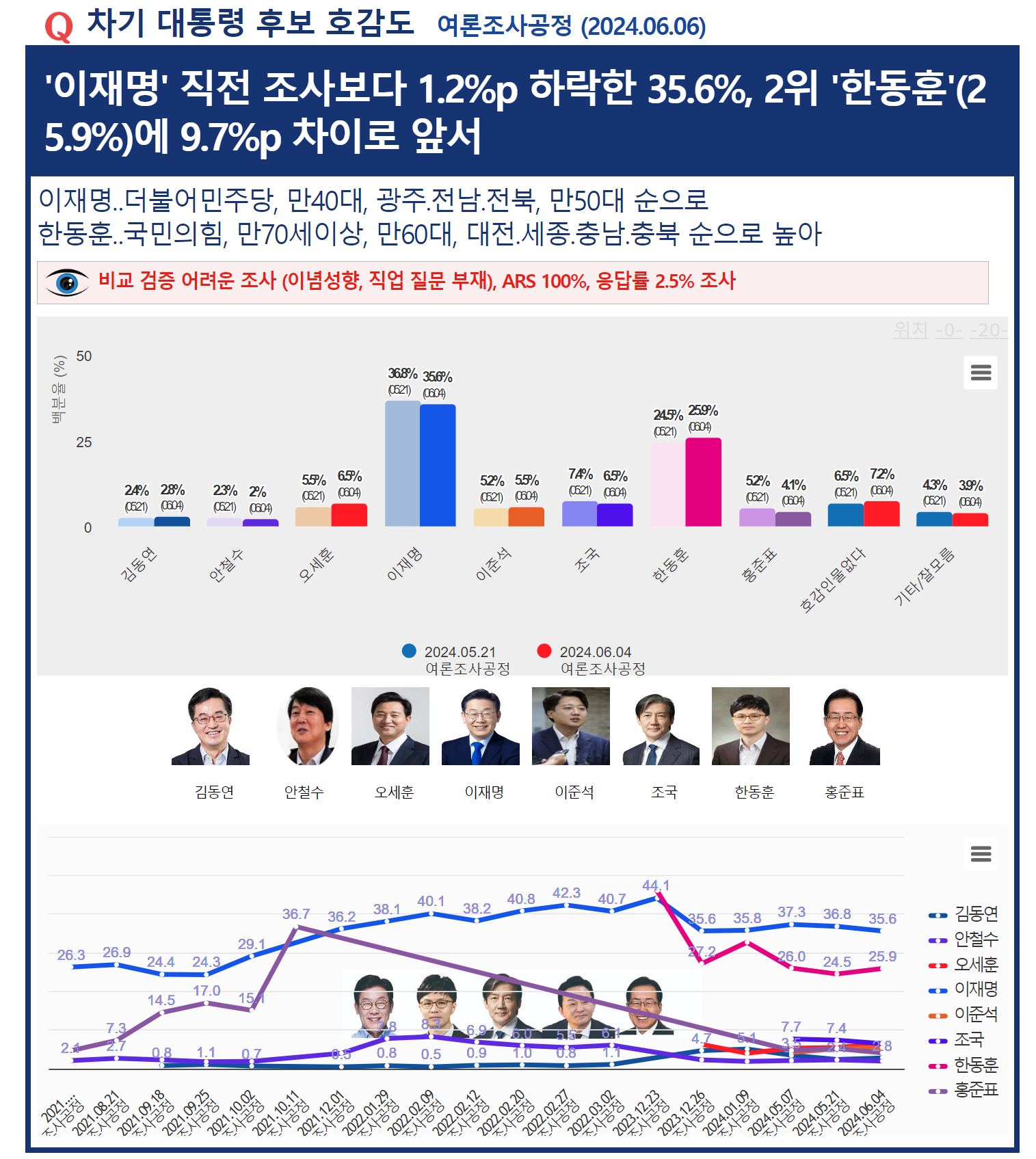 Â÷±â ´ëÅë·É Èĺ¸ È£°¨µµ(¿©·ÐÁ¶»ç°øÁ¤, ÀÀ´ä·ü 2.5%, 100% ARS Á¶»ç, 2024.06.06°øÇ¥)
